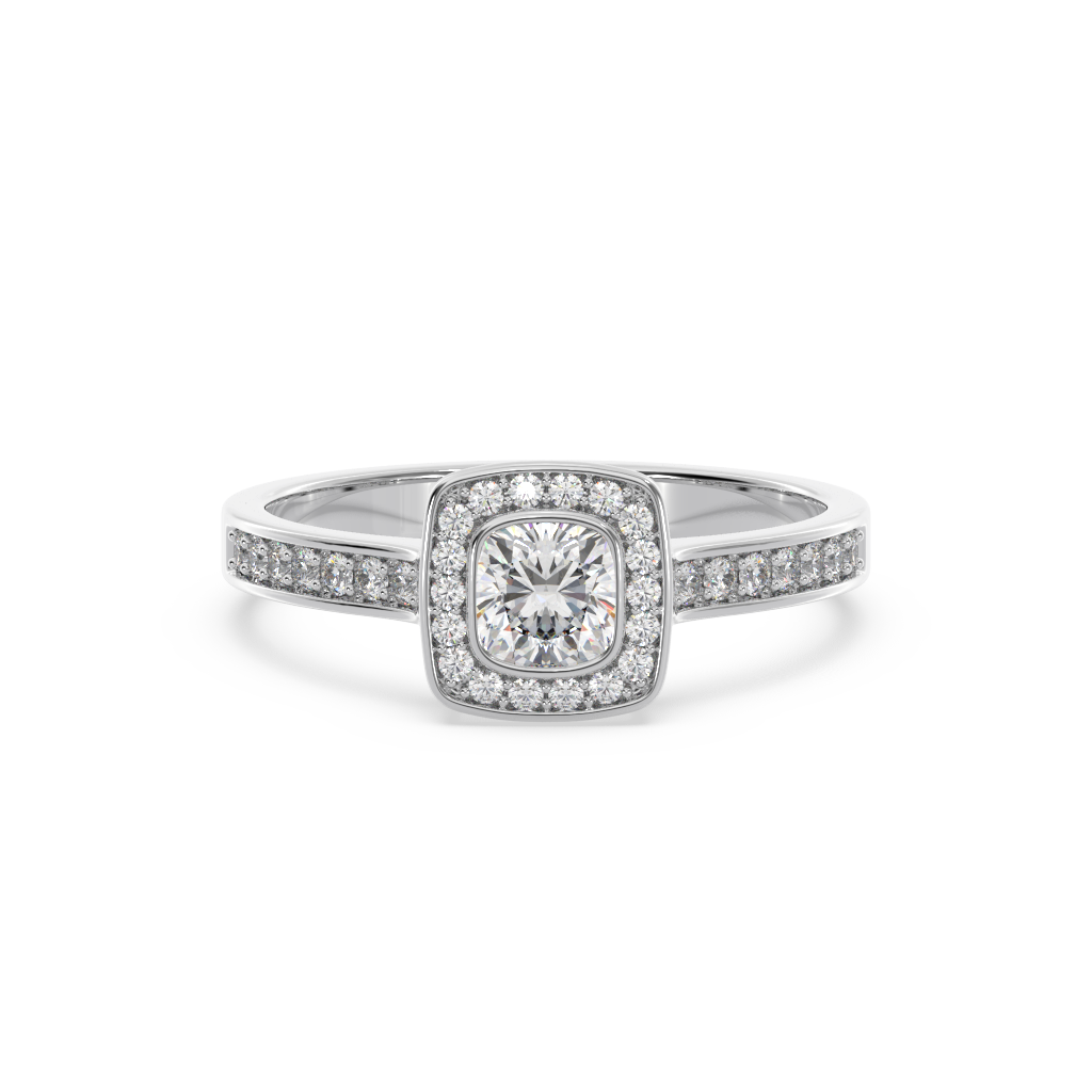 You have chosen engagement ring, white gold 18kt set with 0.50 ct diamond, g / vs. Whit a round brilliant diamond halo with total weight approx 0.60 ct.